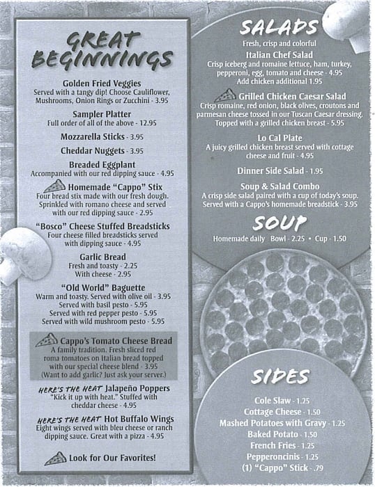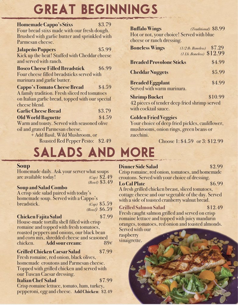 Whether you're looking for a quick lunch, a family dinner, or a cozy spot to unwind, Cappo's promises a satisfying experience with consistent flavors and cozy ambiance. Don’t miss the chance to enjoy a slice today!